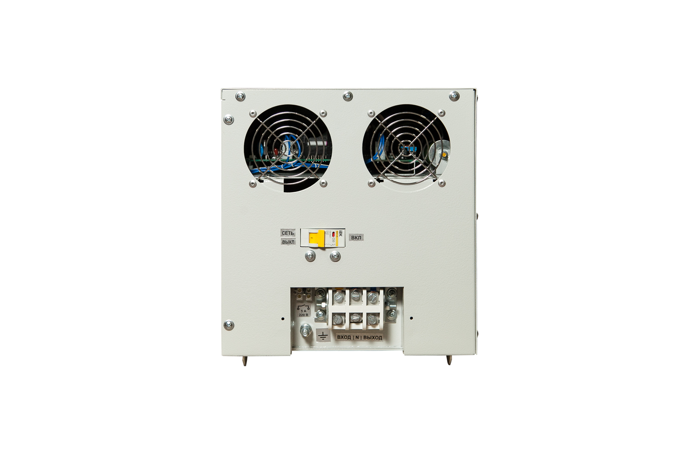 Подключение: Стабилизатор подключается к сети через блок клеммных зажимов. Нагрузка подключается к выходу стабилизатора через блок клеммных зажимов.